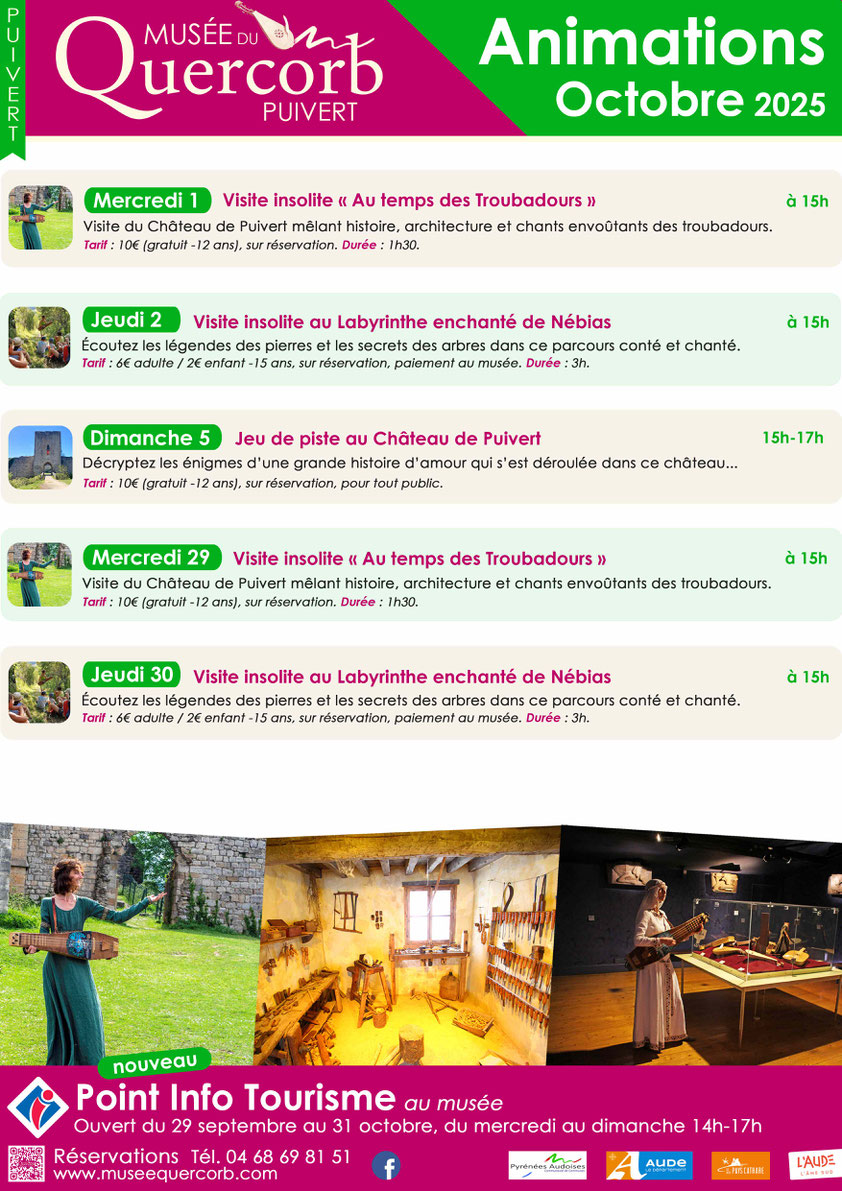 Le musée du Quercorb et de l’Instrumentarium à Puivert est un musée de l’imaginaire et du ressenti, un musée qui évoque la vie quotidienne en Quercorb et qui ouvre une fenêtre sur la musique médiévale, depuis les troubadours jusqu’à l’ars nova, musique polyphonique savante.